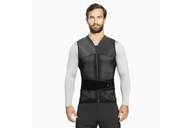 Díky Active Thermo Fit konstrukci se vesta po chvíli nošení aktivně vytvaruje podle tvaru zad, čímž zaručí přesné usazení a elegantní, přiléhavý střih. Kombinace Elastic Air Mesh a 4-Way Stretch Lycra zajišťuje vynikající prodyšnost, flexibilitu a tepelný komfort. Odnímatelný a výškově nastavitelný bederní pás umožňuje individuální přizpůsobení různým délkám trupu a stylu jízdy. Vesta je plně pratelná a navržená tak, aby vydržela každodenní používání v horách.