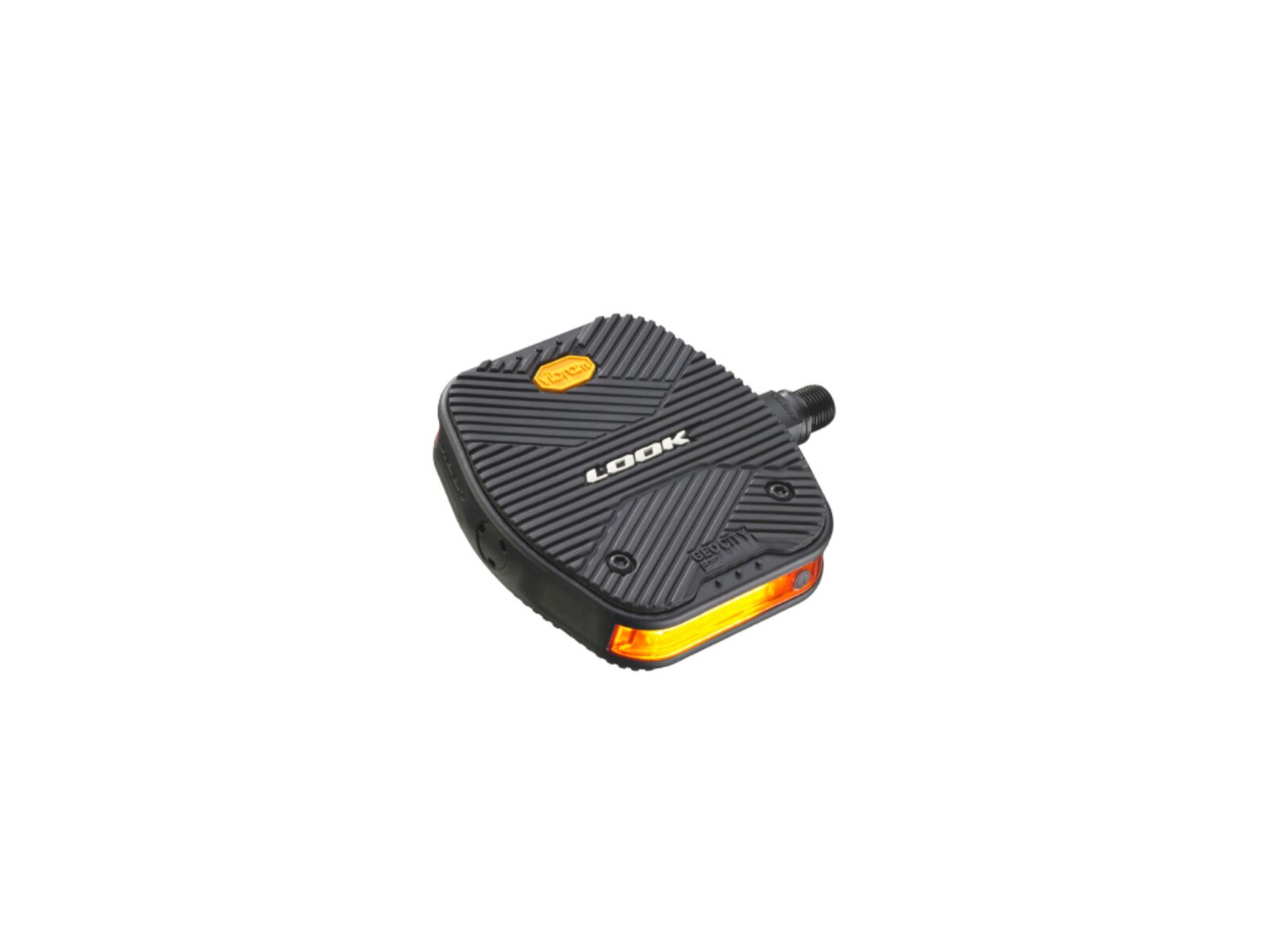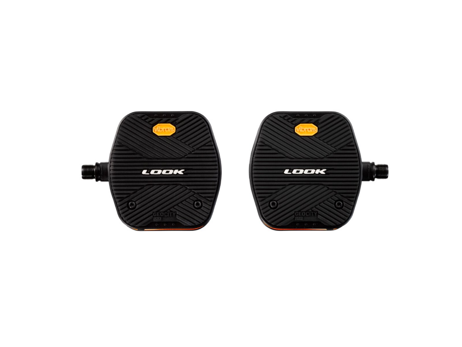Pedály LOOK GeoCity Grip Vision jsou revoluční městské pedály s integrovaným dobíjecím světlem pro zvýšení vaší bezpečnosti. Pedály mají speciální výměnnou platformu vyvinutou ve spolupráci s firmou Vibram, která zajišťuje vynikající grip díky kombinaci speciálních materiálů. Pedály eliminují nepříjemné kontakty s ocelovými piny a disponují čtyřmi módy svítivosti (Steady 20 lumens, Day flash 50 lumens, Night flash 10 lumens, Flash eco 6 lumens). Rozměry pedálů jsou 107x103 mm a nabíjení probíhá přes micro USB.