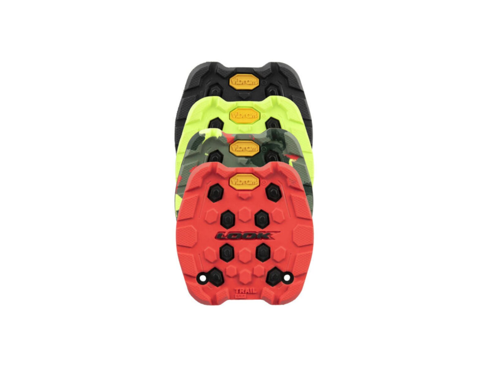 Díky spolupráci se společností Vibram – přední značkou gripů – a LOOKU vznikly platmorfové pedály LOOK Trail Grip se systémem LOOK Activ Grip by Vibram. Využívá speciálně vyvinutou gumovou směs a kompozitní hroty pro vynikající přilnavost za každého počasí a v každém terénu. Bezpečný, měkký design běhounu vám nepoškodí podrážku ani neporaní holeně. Široká kompozitní šestihranná mřížka základny pedálu poskytuje maximální oporu a pevnost při náročnější jízdě a systém ložisek a pouzder, který zvítězil v profesionálních enduro závodech, zajišťuje spolehlivost.