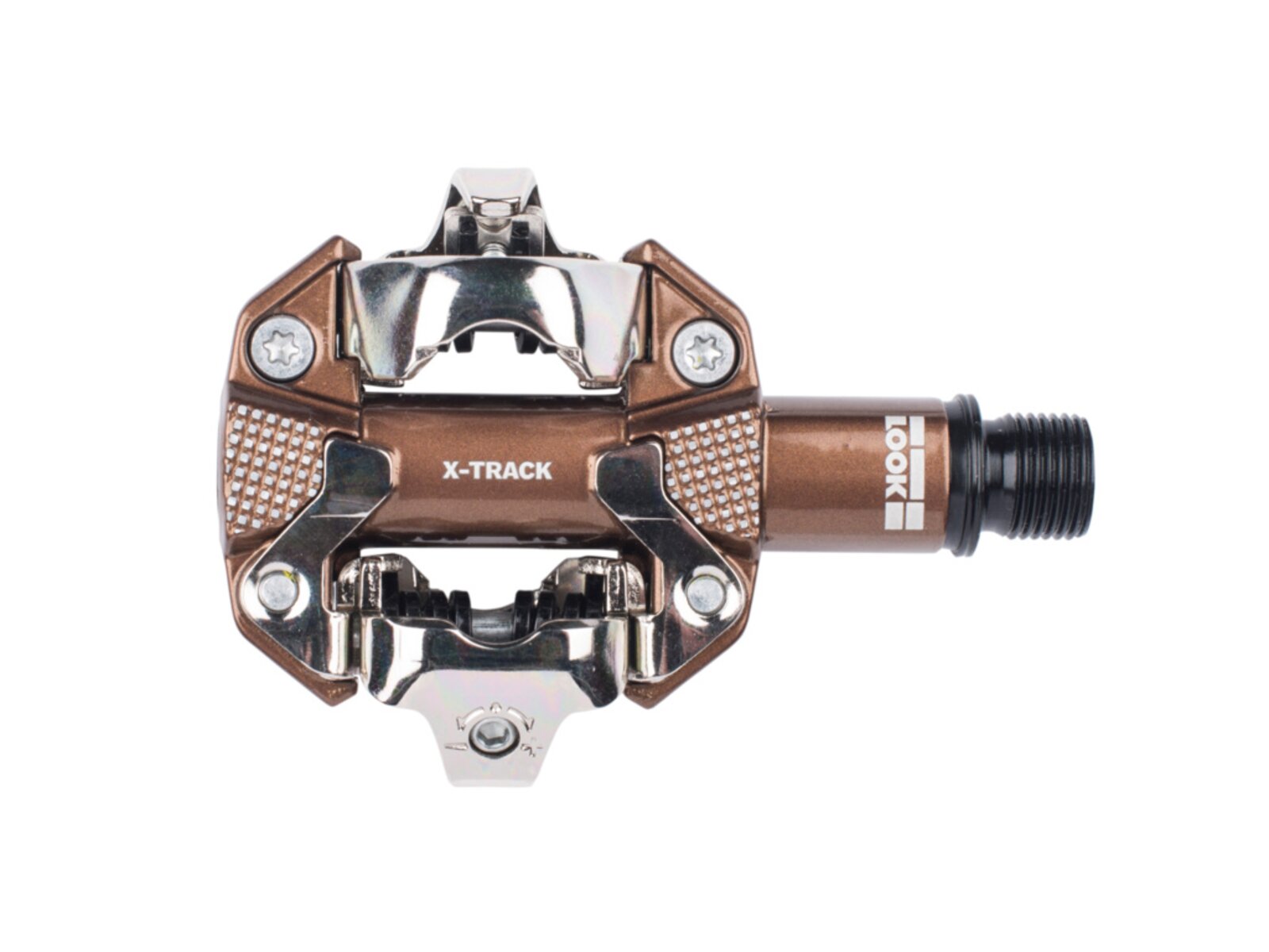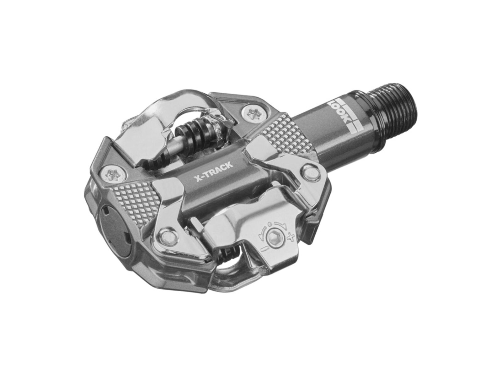X-Track je základní model MTB pedálu LOOK, který je tvořen robustním hliníkovým tělem a dvojitě utěsněnou osou z materiálu Chromol, Ta zajišťuje naprostou plynulost v průběhu šlapání. Předpětí lze snadno a rychle nastavit v rozsahu 6 až 14 podle požadavků cyklisty. Pedály kombinují mechanismus SPD standardu s širokou kontaktní plochou pro efektivitu a bezpečnost.