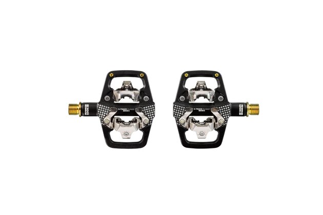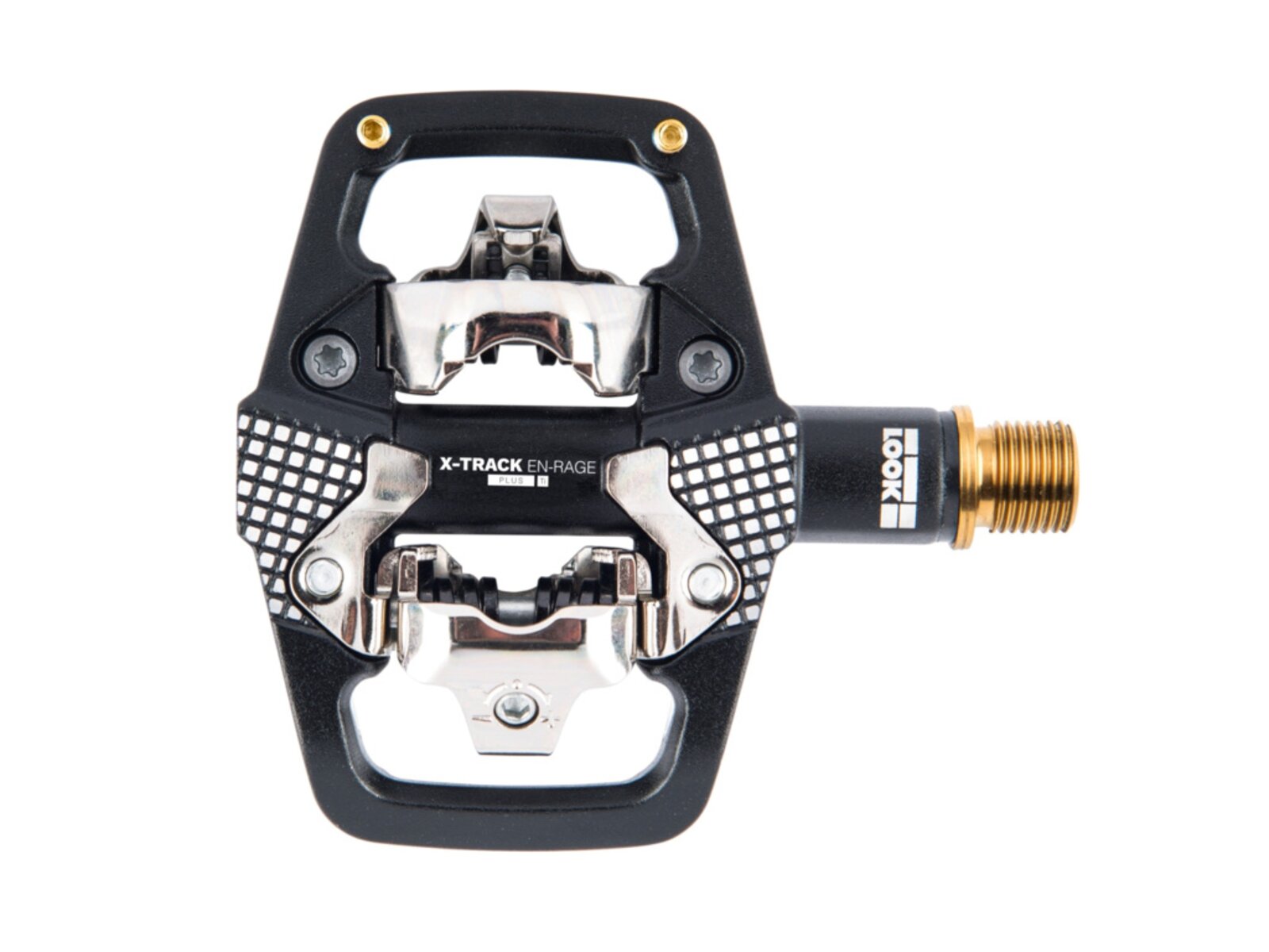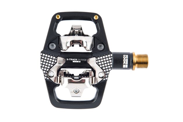Pedál LOOK X-Track En-Rage Plus má kované hliníkové tělo, které zajišťuje neuvěřitelnou pevnost, a je kompatibilní se systémem SPD. Je vybaven titanovou osou, která zvyšuje pevnost a tuhost, zároveň šetří gramy. Má 67 mm širokou platformu a 664 mm² kontaktní plochy. To zajišťuje lepší stabilitu a oporu, zejména při vysokých rychlostech. Čepy a žebrování těla pedálu zajišťují přilnavost za všech okolností. Konstrukce modelu byla navržena na základě robustního vřetena a ložiskového mechanismu. Ten je odolný vůči poškození vnějšími vlivy (kameny, kořeny, bláto atd.). Boční kontaktní opora vede nohu při hledání pedálu a poskytuje kontaktní bod, i když se bota ještě nezacvakla. Tato široká kontaktní plocha zabraňuje klouzání nohy po těle pedálu a nabízí konzistentní a jistou oporu. Model X-Track En-Rage Plus Ti dokonale vyhovuje požadavkům enduro jezdců.
