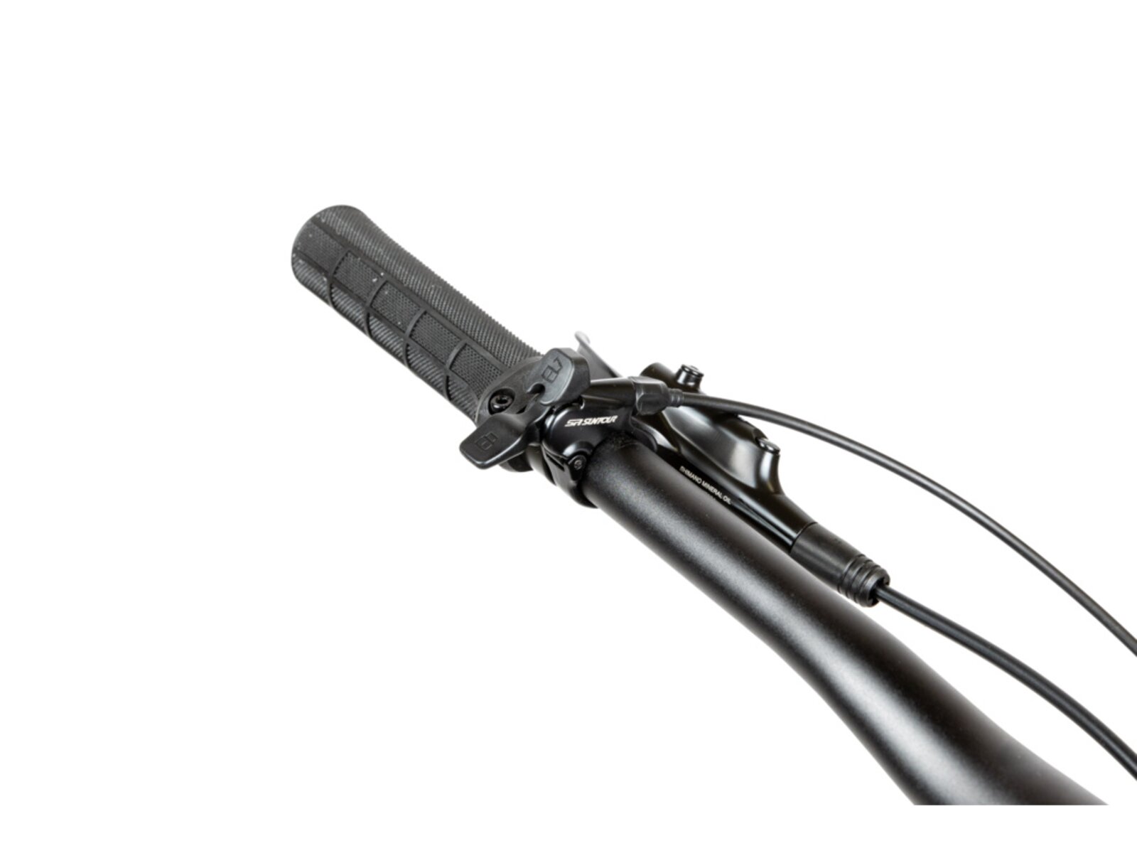 Větší tuhost a lepší tah přidává vzduchová vidlice SR Sunout XCR32 AIR s pevnou osou. Umožňuje nastavit odskok pro plynulejší jízdu v terénu, nebo ji můžeš úplně uzamknout pro rychlejší jízdu na asfaltu.