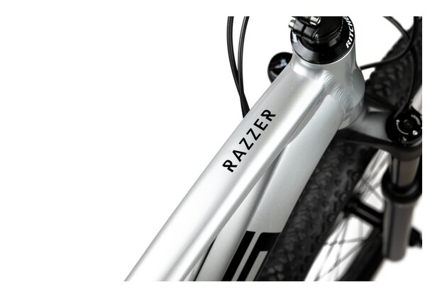 Razzer Evo je hardtail z třikrát zeslabovaného hliníku vybavený pevnými osami, které tvoří nejvýraznější rozdíl mezi ním a klasickou verzí Razzer. Pevné osy zajišťují Razzeru Evo kvalitní tuhost a tah na branku. Lehkost rámu slibuje hravost za všech okolností.