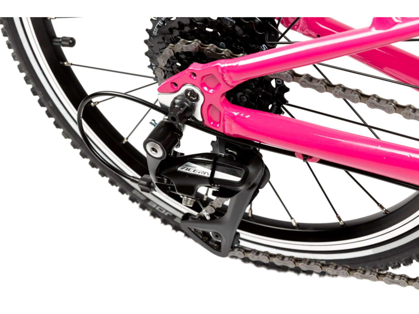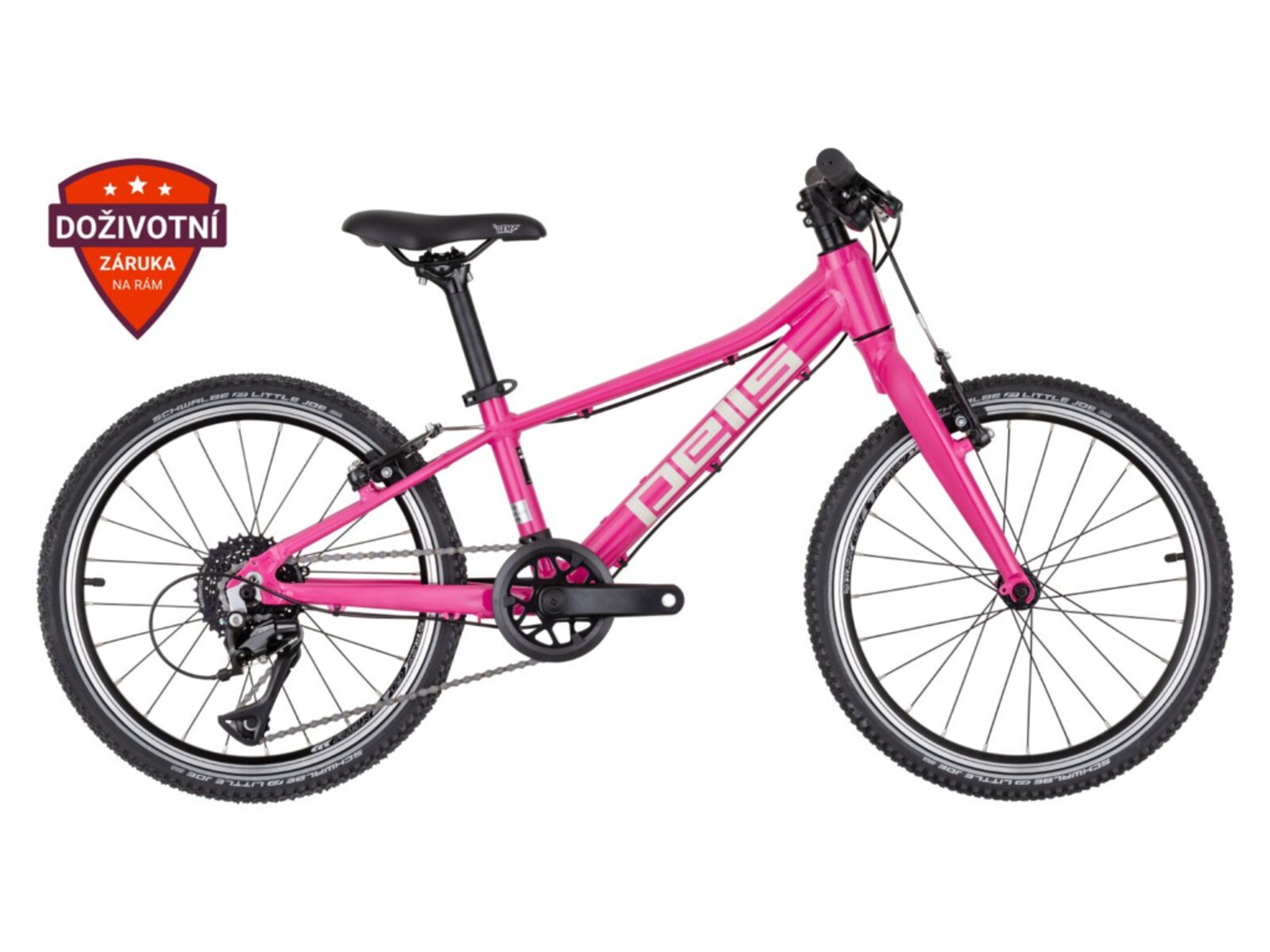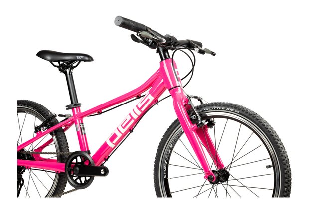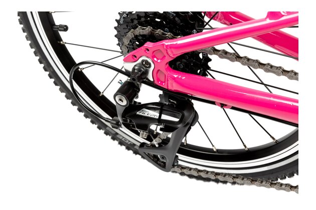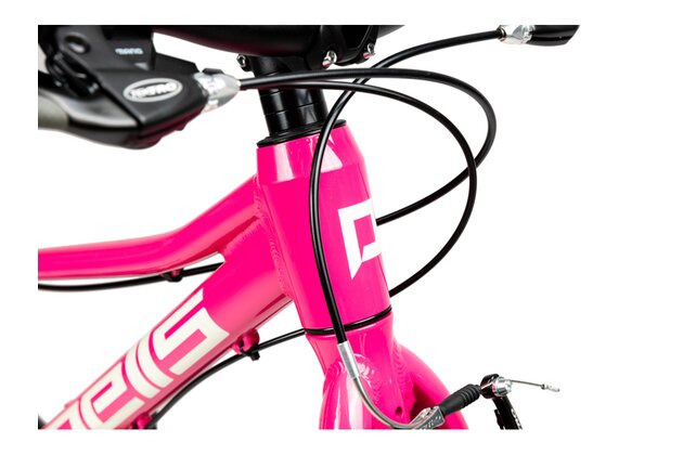 Nízká hmotnost, cenová dostupnost, geometrie přizpůsobená dětským proporcím. To vše doplňují lehké a účinné V-brzdy a kvalitní přehazovačka Shimano s 8 převody.