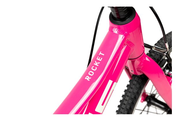 Lehký rám. Základ každého kola. Rocket Lite jej má z hliníku, speciálně přizpůsobený dětským proporcím. S důrazem na stabilitu a bezpečnost dítěte. Abychom zachovali jeho co nejnižší hmotnost (8,5 kg), osadili jsme jej pevnou vidlicí.