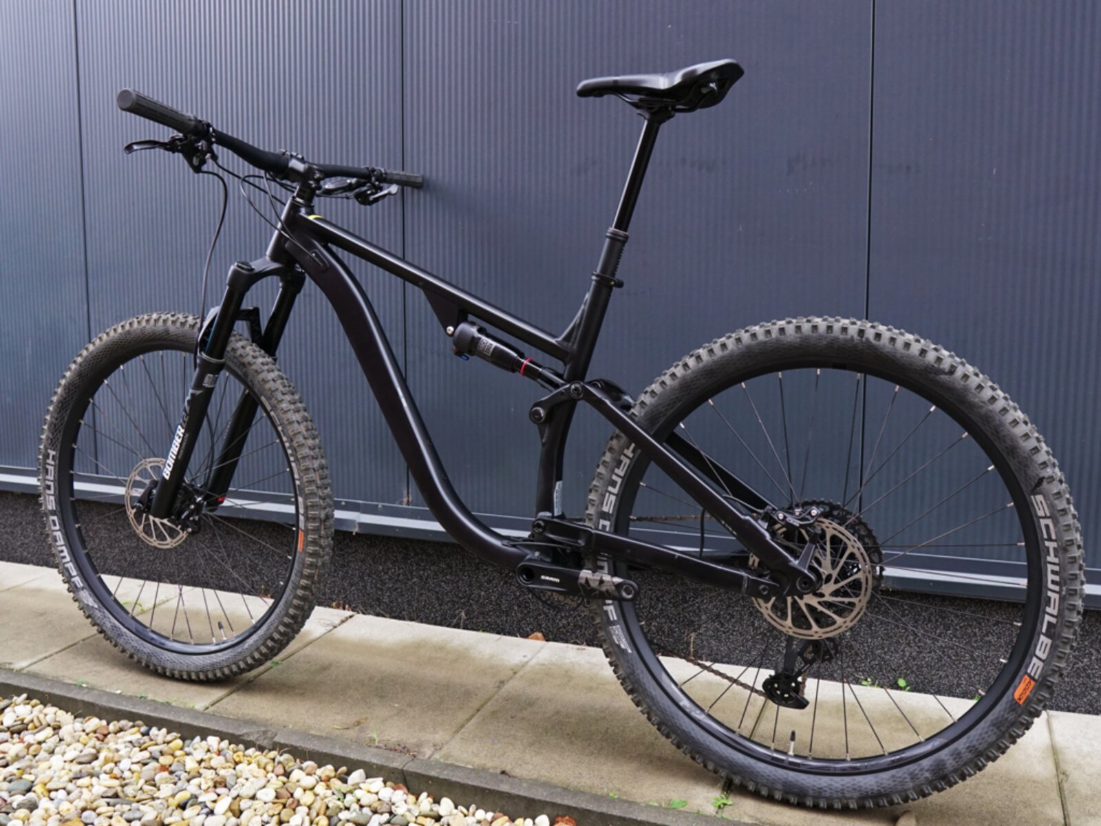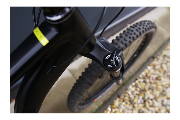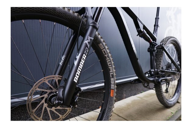 Ne každý polet je vždycky s čistým dopadem. Odolné enduro ráfky Rodi Tryp 30 ale zvládnou hrubší zacházení a sem tam nějakou tu hranu na doskoku odpustí. Pro ještě větší zábavu na trailech jsou obuté do kvalitních plášťů Schwalbe Tough Tom.