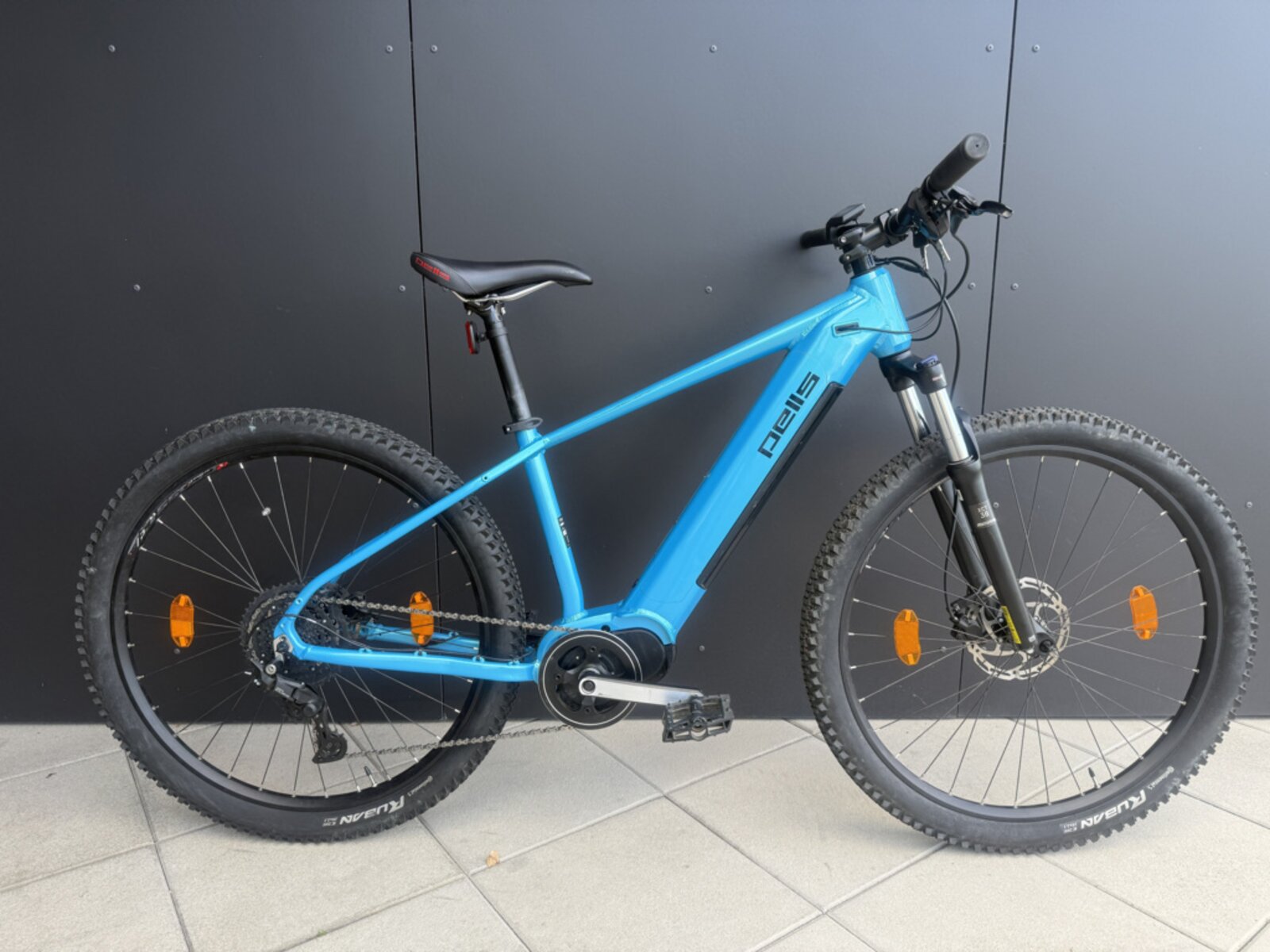 Přepracovaný model elektrokola Pells Base nabízí zcela nový rám s plně integrovanou baterií s kapacitou 504 Wh a osvědčeným středovým motorem Bafang M400. Ten nabízí 5 úrovní přípomoci a díky torznímu senzoru přesně dávkuje dodávaný kroutící moment až 80 Nm. Nástup výkonu tak přesně odpovídá potřebám jezdce a nedochází k nežádoucímu “kopání”. Navíc lze motor přepnout do režimu chůze, který oceníte například při tlačení kola do prudkého kamenitého kopce. Vnitřní vedení bowdenů nechá naplno vyniknout čistý a jednoduchý design celého rámu. Pro zajištění co nejlepších jízdních vlastností a spolehlivého přenosu výkonu bez ohledu na povrch jsme zvolili kvalitní pláště Continental Ruban. Výbavu modelu Thorr 3 dále doplňuje pohon Shimano Cues s 1x9 převody, hydraulické brzdy Tektro HDM-285 a odpružená vidlice SR Suntour XCT 100 mm.