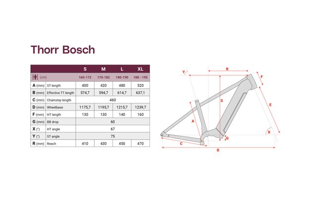 Geometrii kola jsme zaměřili na tvoje pohodlí. Její úhly však naznačují, že kromě klasické cyklostezky se s Thorrem Bosch 1 AT můžeš bez obav vydat i na méně náročný singletrail. Cestou z kopce jistě oceníš teleskopickou sedlovku – umožní ti s kolem lépe manévrovat.