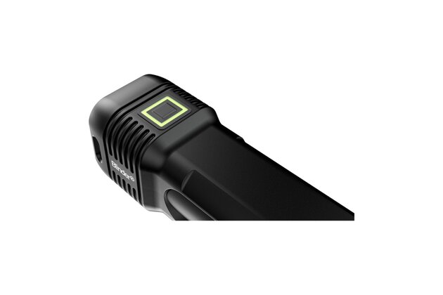 Světlo LED kolem silikonového tlačítka Blinder s měkkým dotykem umožňuje rychle zjistit zbývající nabití a stav nabíjení. Rychlým stisknutím vypnutého tlačítka se zobrazí zbývající nabití, přičemž zelená barva znamená 100-50 % zbývajícího nabití, žlutá 50-25 % a červená méně než 25 %. Při nabíjení signalizuje žluté blikání, které se po nabití změní na zelené.