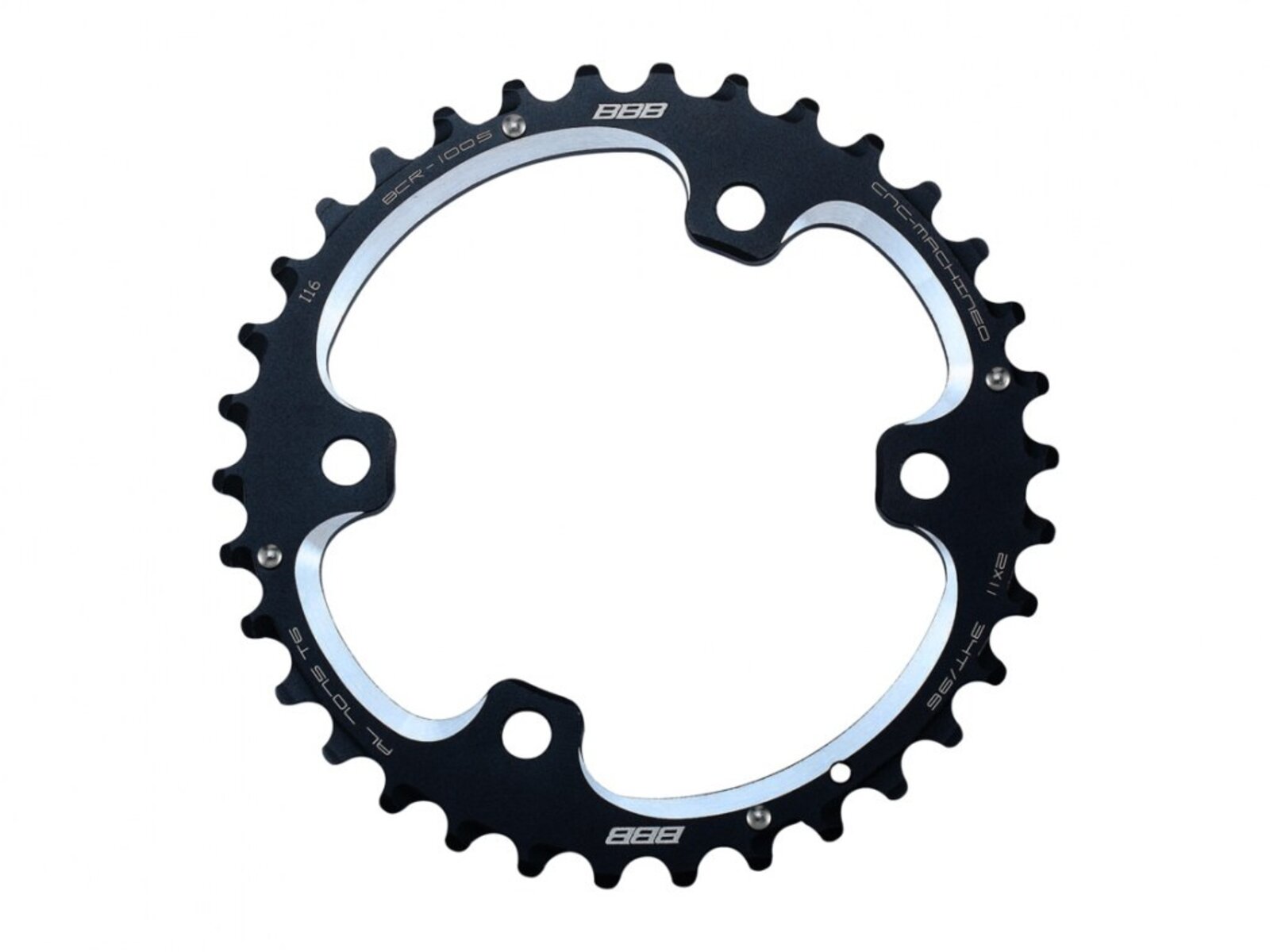 Extra odolný velký 4 ramenný převodník BBB MTBGear je speciálně navržený pro vybrané kliky Shimano Deore XT a SLX (2x11 rychlostí). Je vyrobený z lehké slitiny Alu, která zajišťuje vynikající pevnost při minimální hmotnosti.  Převodník je obrobený CNC technologií a vybavený řadícími piny zajišťující snadné a rychlé řazení.