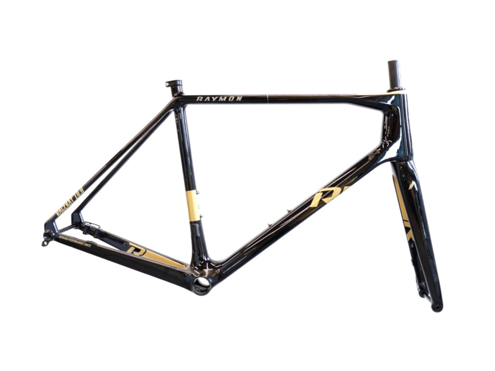 Silniční karbonový rámový set Raymon RaceRay 10.0 pro kotoučové brzdy, včetně celokarbonové vidlice.