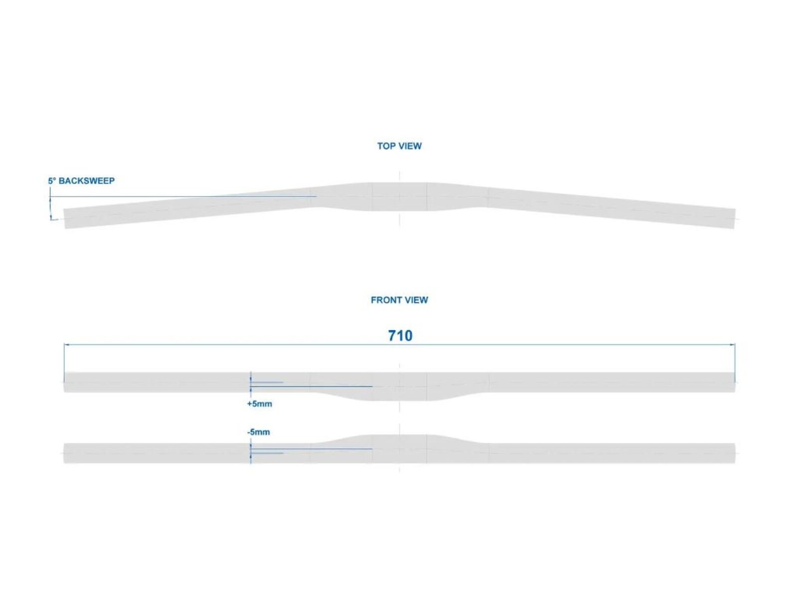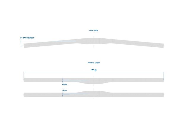 MTB XC sportovní řídítka, šířka 710 mm, zahnutí 5 stupňů, matná povrchová úprava, hmotnost 276 g.