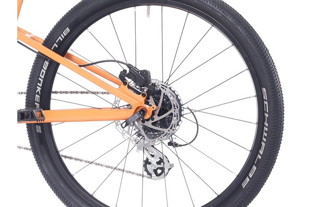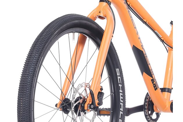 Širší 2,25" pláště zajišťují lepší přilnavost a jistotu na štěrku, blátě i lesních cestách a zároveň zvyšují celkový komfort při jízdě. Lehká hliníková vidlice přispívá k celkové nízké hmotnosti kola a snadnému ovládání.