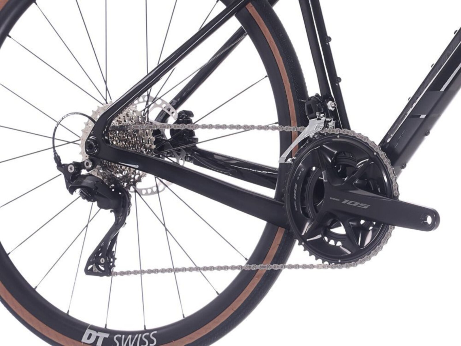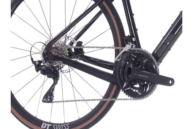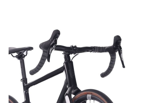 Kolo je osazeno silniční/gravelovou sadou Shimano 105 2×12, která nabízí mimořádně plynulé a přesné řazení s širokým rozsahem převodů. Díky kombinaci klik 50/34 a kazety 11–36 zvládne Lukk CR 80 prudké stoupání i rychlou jízdu po rovině. Skvěle funguje i hydraulické brzdění – spolehlivé, výkonné a snadno ovladatelné.