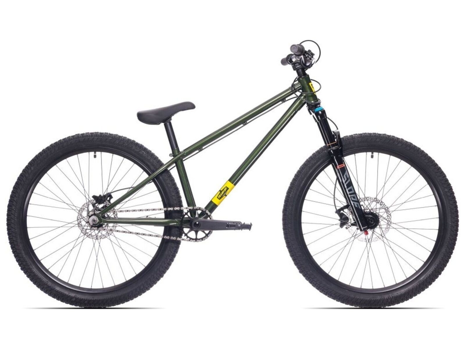 Riff 50, je o fous dospělejší brácha Riffu 30. Vybaven jen tím co je opravdu potřeba, rám z nejklasičtějšího materiálu Cr-Mo 4130, 2 brzdy, 1 převod a 1 velikost pro všechny a navíc festovní vidlice RST Slope. Maximální zábava s minimem údržby. Exceluje na pumptracku a zvládá dirty. Je libo spolestyle? Barspin? Bez problémů, hadice přední brzdy vede sloupkem řízení. Pivotal sedlo a sedlovka stažená šroubem bez objímky, originální napínáky řetězu z nerez oceli.