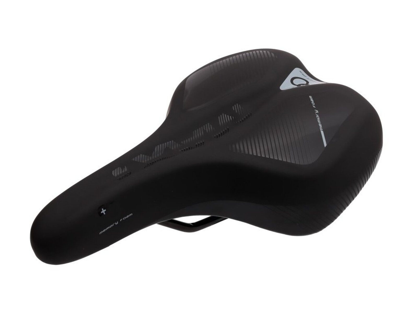 Tvarování v místě sedacího nervu eliminuje nepříjemné pocity z dlouhé jízdy. Základna složená ze dvou funkčních materiálů zajišťuje tuhost a pohodlí ve spojení s ocelovými vzpěrami.