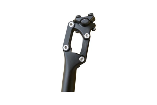Odpružená sedlovka s paralelogramem zaručuje přirozené pružení ve směru pohybu těla. Tvrdost lze nastavit šroubem na spodu sedlovky, kterým se nastaví tvrdost pružiny.
