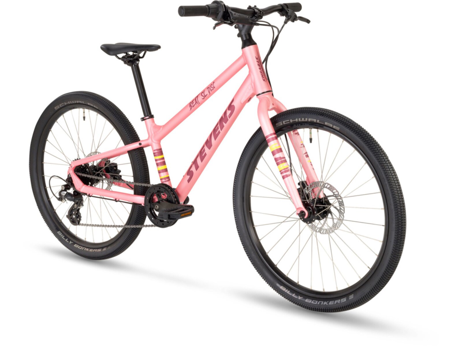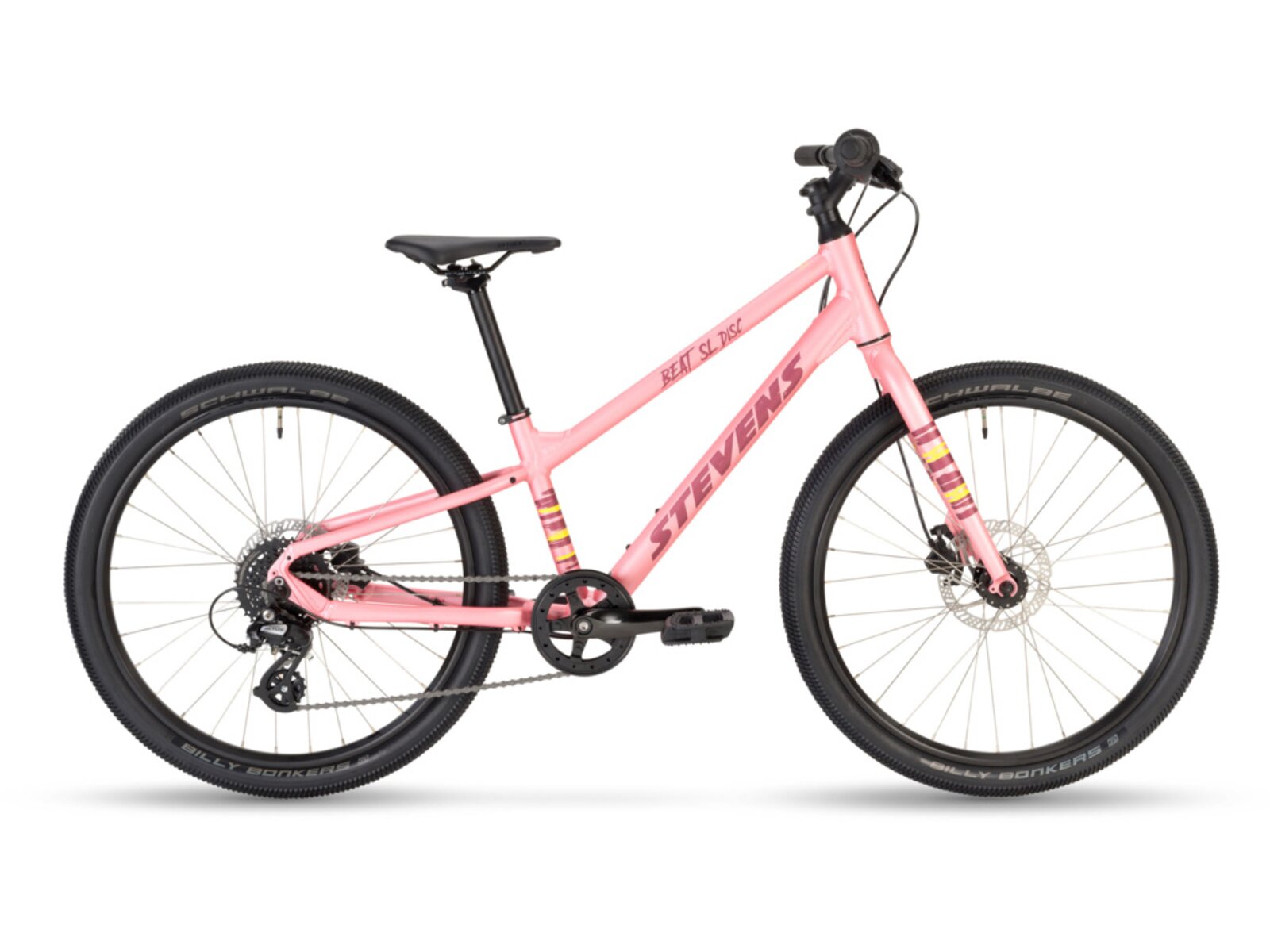 STEVENS Beat SL Disc je moderní dětské horské kolo, které zaujme nejen svou nízkou hmotností, ale i výbornou ovladatelností a bezpečností. Díky odlehčenému hliníkovému rámu z trojitě zeslabovaných trubek a pevné hliníkové vidlici se děti snadno vypořádají s každým výletem – ať už po cyklostezkách, lesních cestách nebo do školy.