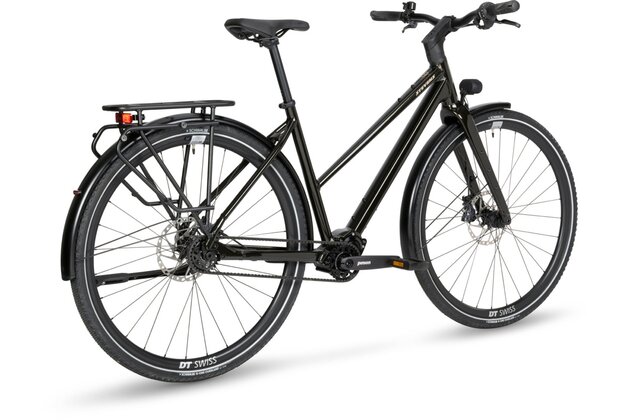 Stevens Caleta 9.2 představuje vrchol nabídky městských a cestovních kol této řady. Je postaveno na elegantním hliníkovém rámu a osazeno vysoce přesnou a extrémně odolnou 18rychlostní převodovkou Pinion P1.18. Spolu s karbonovým řemenem Gates a hydraulickými brzdami Shimano CUES U8000 nabízí tento model bezúdržbový provoz i v náročných podmínkách. Kvalitní kola DT Swiss HG 1800 Spline zvládnou vyšší zatížení, zatímco výkonné světlo Supernova M99 Pro zaručí perfektní viditelnost ve dne i v noci. Komfort a jistotu doplňují 45mm pláště Schwalbe G-One Overland a promyšlený kokpit Scorpo.