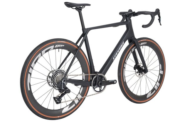 STEVENS Camino RS Pro AXS v matně šedé barvě Nightstone je ultimátní gravel stroj pro závodní nasazení i ambiciózní ježdění. Karbonový rám nové generace je postaven s důrazem na aerodynamiku – inspirován silničním modelem Arcalis a komfortním Xenith Endurance. Díky integrované objímce sedlovky, slopingové geometrii a čistým liniím nejen skvěle vypadá, ale také exceluje v rychlosti a ovladatelnosti.