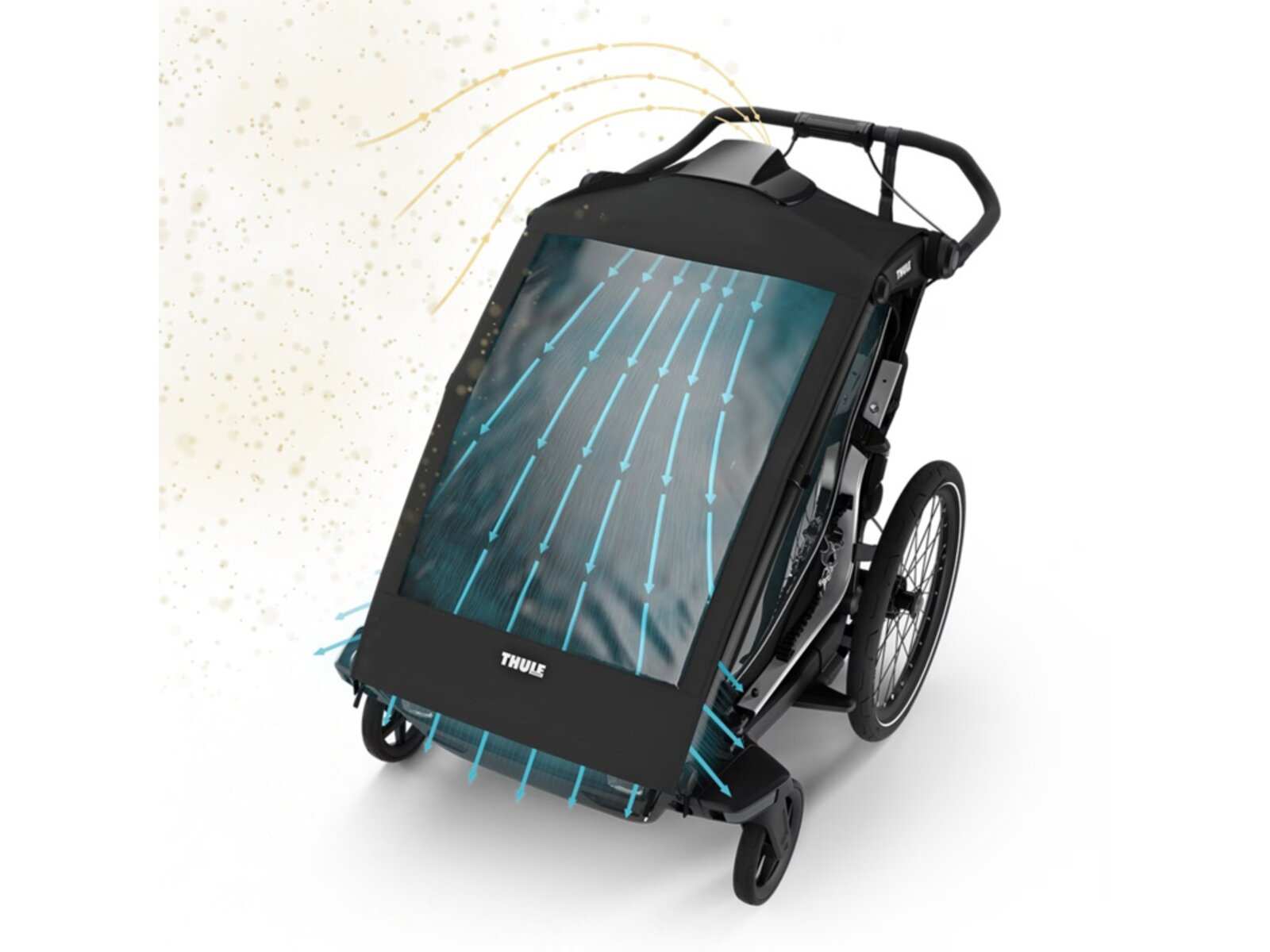 Thule Chariot air purifier cover feature - Works with open cover