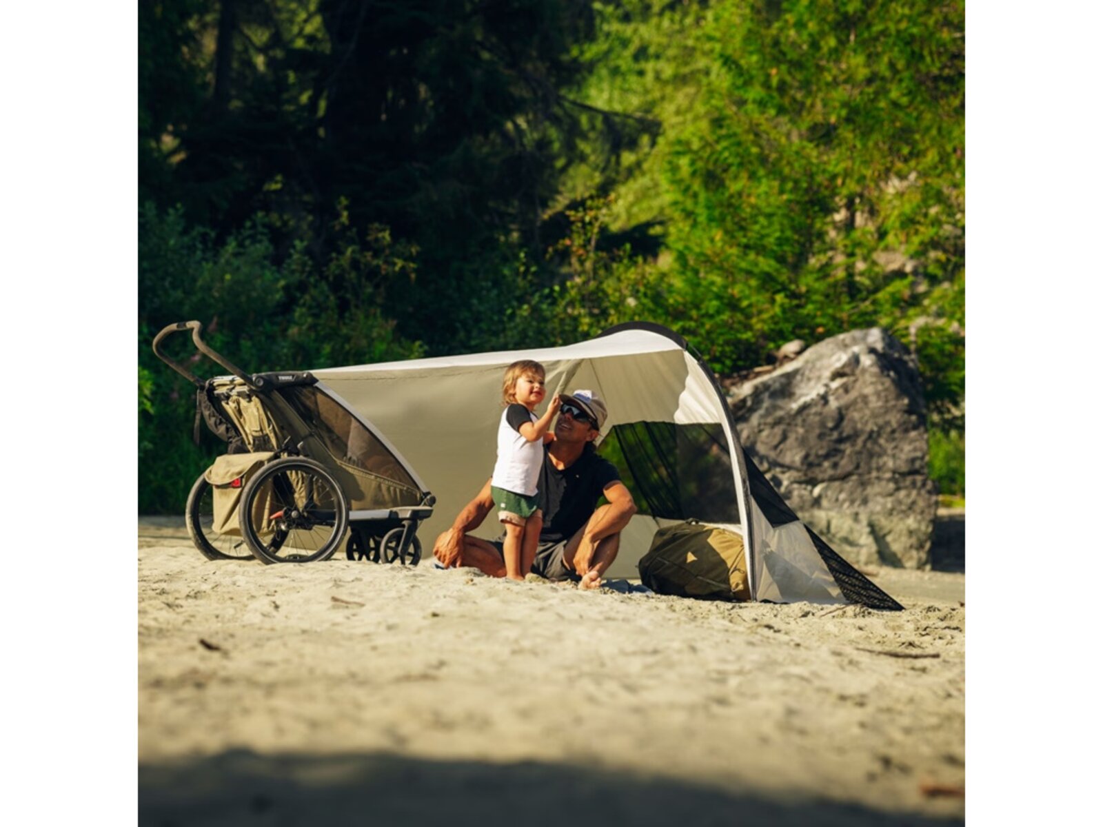 Navržena tak, aby pasovala na oba typy: kočárek Thule Urban Glide a vozík Thule Chariot. Přístřešek nabízí dostatečné pokrytí pro lepší pohodlí a ochranu