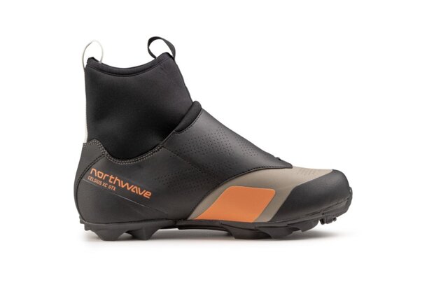 Zimní MTB cyklistické tretry NORTHWAVE Celsius XC GTX jsou cyklistické tretry vybavené lehkou a zároveň tuhou kompozitní podešví, která disponuje indexem tuhosti 8 a zaručuje efektivní přenos sil do pedálů. Patní část podešve je vyrobena z přírodní pryže a zaručuje výbornou přilnavost podešve na jakémkoli povrchu. Špička tretry je zesílena potěrem z termoplastického polyuretanu (TPU). Svršek tretry obepíná nohu bez tlakových bodů a efektivně eliminuje aerodynamický odpor, čímž se šetří výdej energie.
