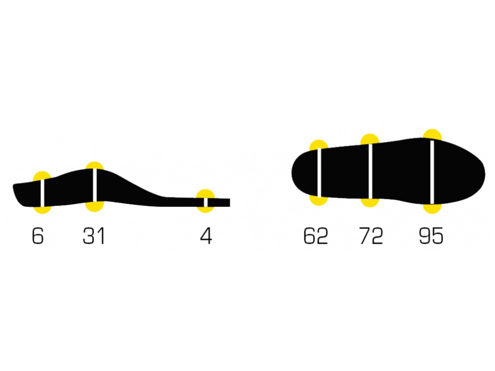 - Zpevnění ve střední části chodidla (EVA) poskytuje lepší stabilitu a kontrolu nad každým krokem