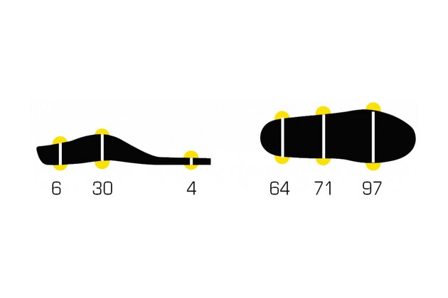 - Struktura přední části chodidla (EVA pryž) zvyšuje pohon