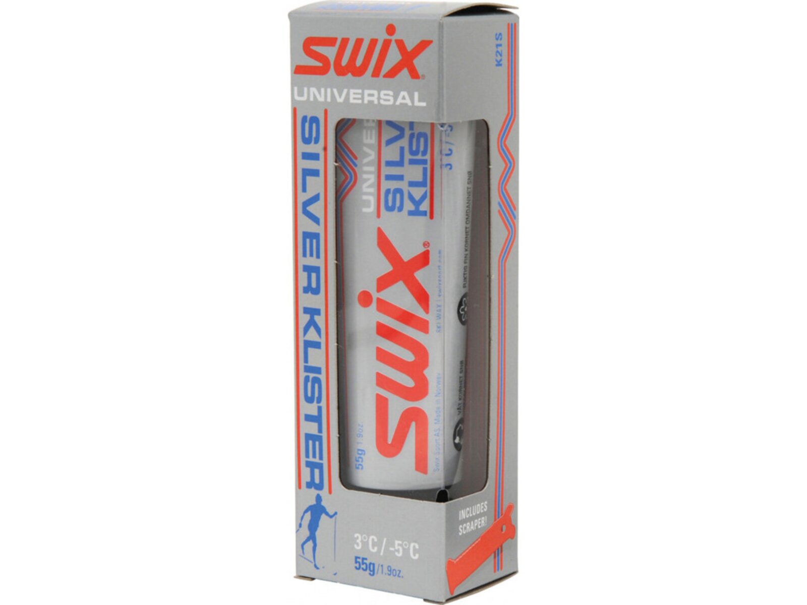 Univerzální stříbrný klister, určený pro teploty v rozmezí od +3 °C do -5 °C, je perfektní všestranný klister pro proměnlivé podmínky kolem nuly. Tento všestranný produkt je účinný na smíšené typy sněhu, od jemného po hrubý. Skvěle funguje jak na mokrém, novém a méně zrnitém sněhu, tak i na zrnitějším, mokrém sněhu.