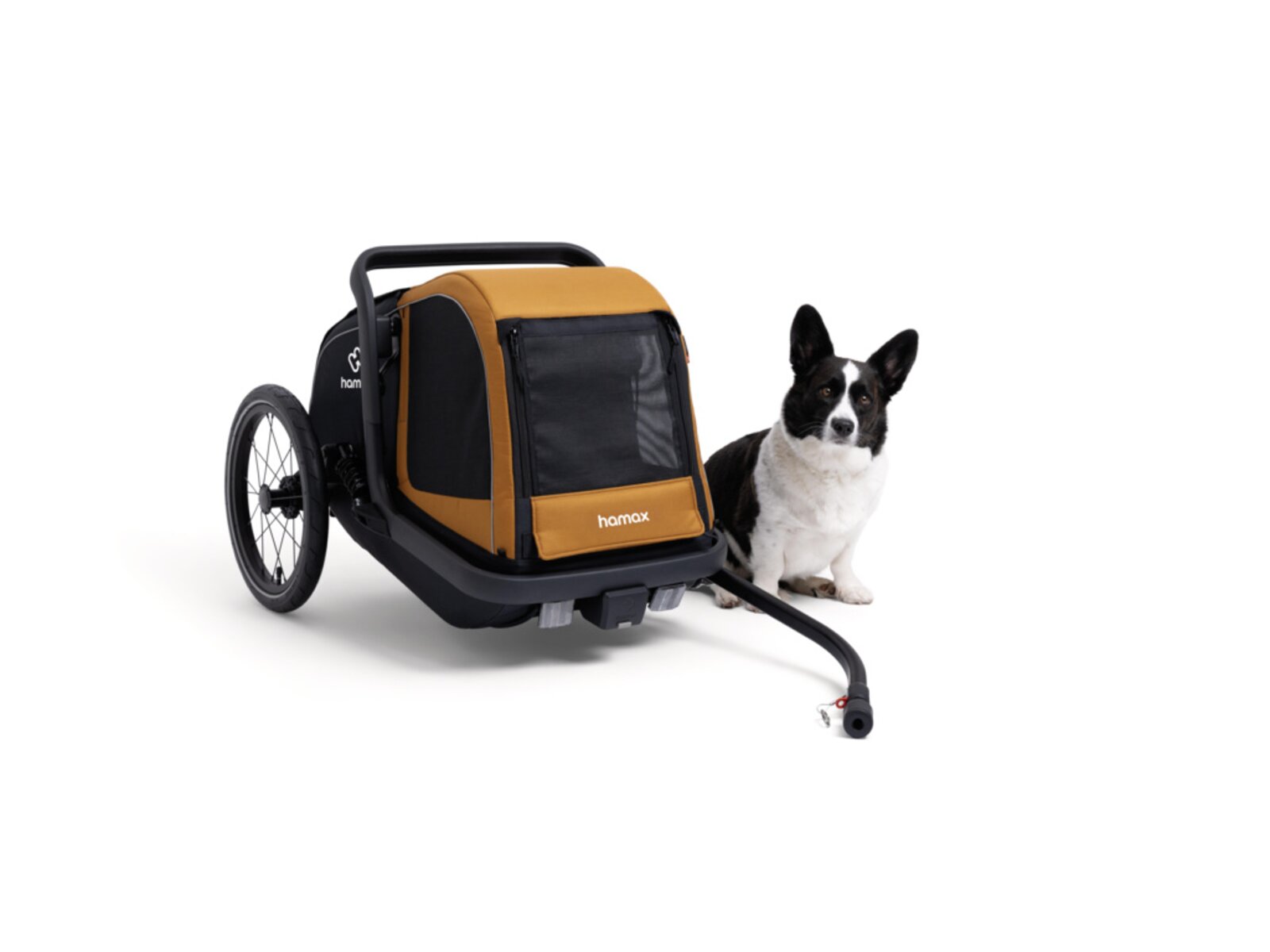 • Nastavitelné odpružení: Pro zajištění hladké a stabilní jízdy je vozík vybaven systémem odpružení se třemi úrovněmi nastavení. Tuhost tak můžete přizpůsobit hmotnosti vašeho psa a terénu, po kterém právě jedete.