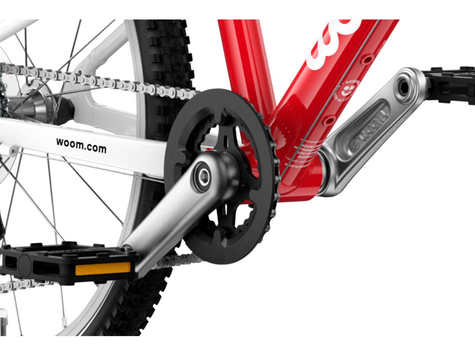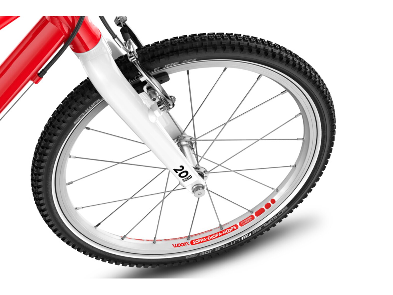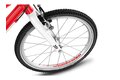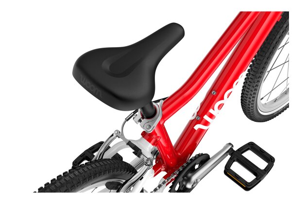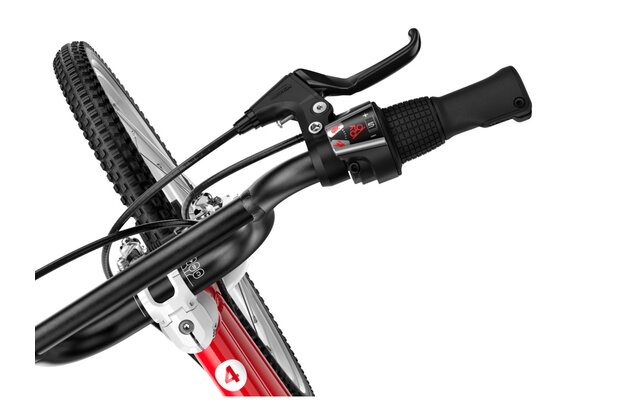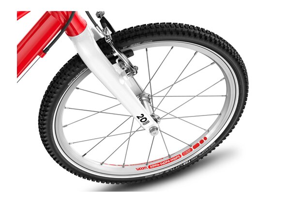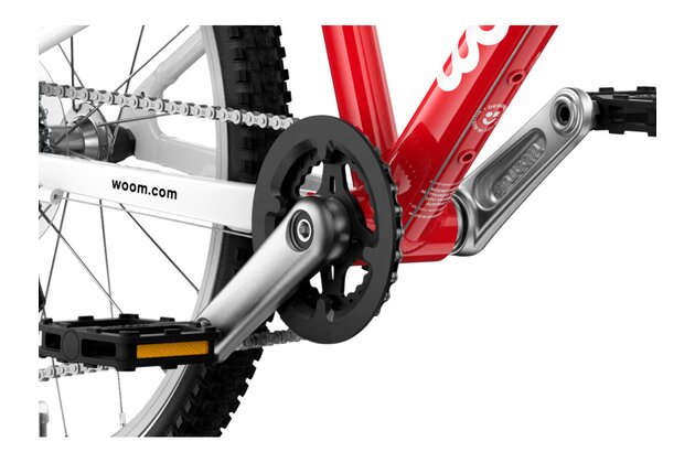 20palcové dětské kolo Woom GO 4 má hmotnost pouhých 7,8 kg a speciální dětskou geometrii, která zajišťuje přirozeně vzpřímenou polohu jezdce a snadné ovládání. Otočné řazení se symbolem zajíce a želvy usnadní dětem řazení a přehazovačka MicroShift se 7 převody umožní zvládnout jízdu v každém terénu.