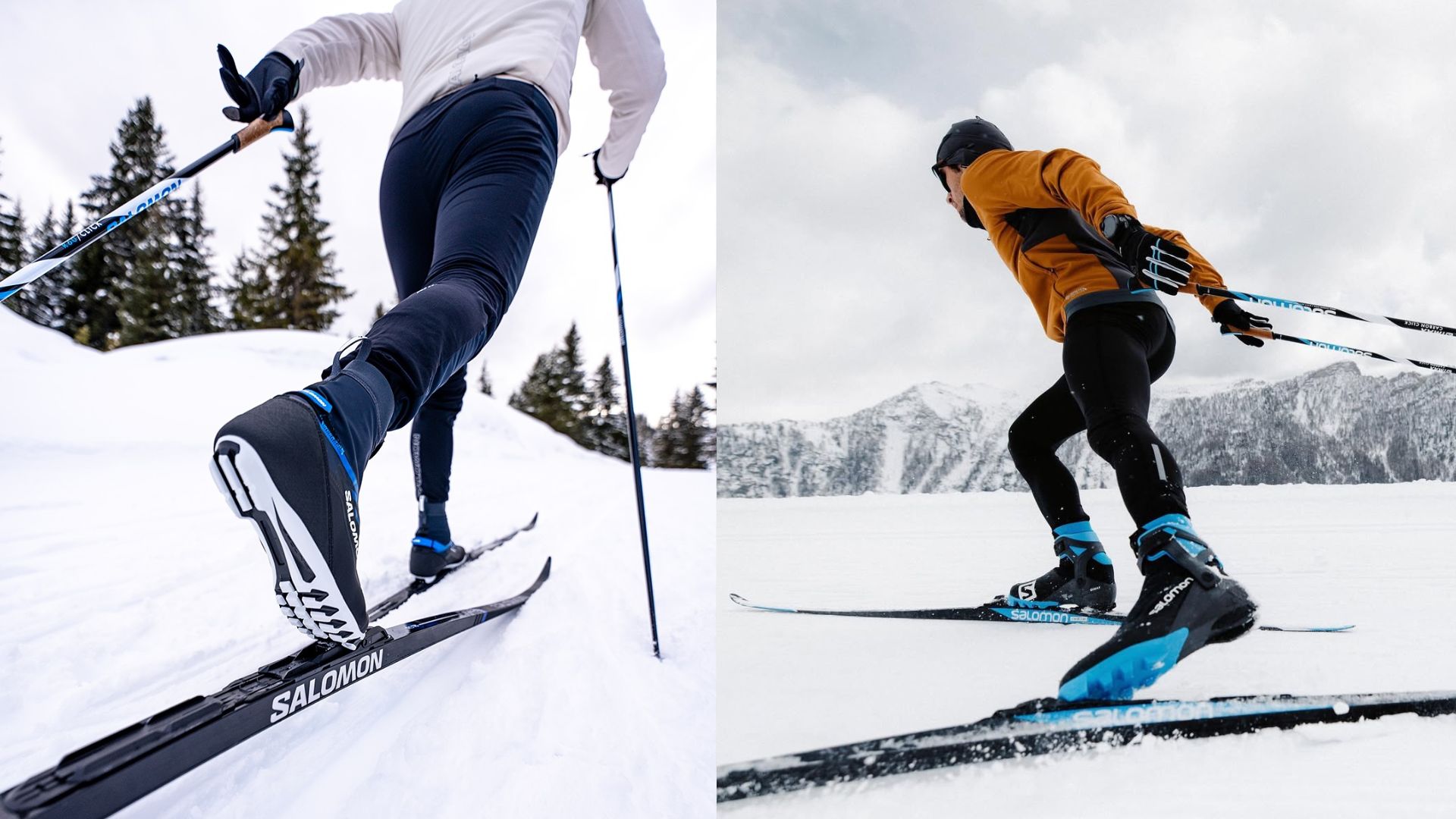 Nezapomeňte na výbavu: kromě lyží potřebujete také kompatibilní vázání, hole a boty. Boty na klasiku jsou nižší a měkčí, zatímco boty na skate jsou vyšší, pevnější a mají tvrdou podrážku pro lepší přenos síly.